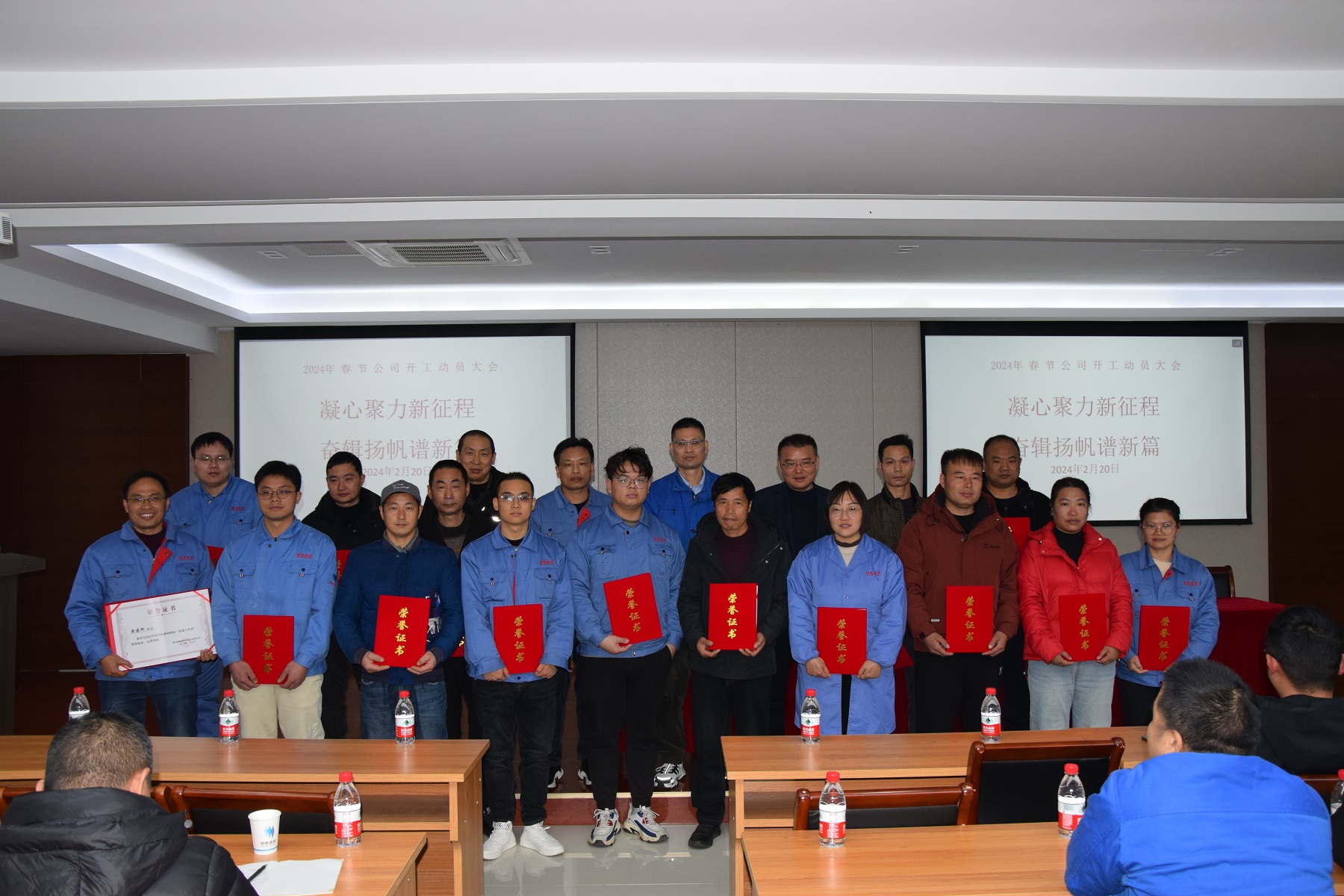 為強化安全生產意識、筑牢安全防線,切實做好春節復工復產安全防范工作,確保節后工作順利開展,2月20日,揚帆新材上虞生產基地組織召開2024年安全生產“開工第一課”培訓會議及2023表彰總結暨開工動員大會。生產基地總經理張永彬作重要講話并部署年度安全工作,會議由人力資源部門應彩瑩主持,公司全體員工參加會議。