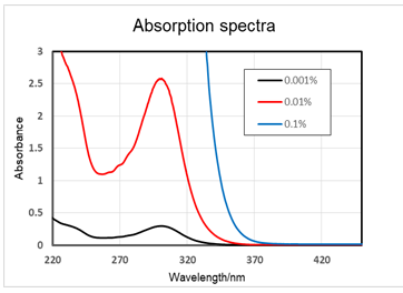 (in Acetonitrile _____0.001% _____ 0.01 % _____ 0.1 %)